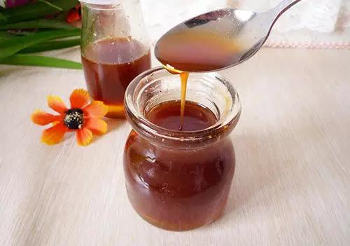 9、待其自然晾至和手溫一致時(shí),用濾網(wǎng)過(guò)濾出熬煮后的梨汁,加入蜂蜜調勻;