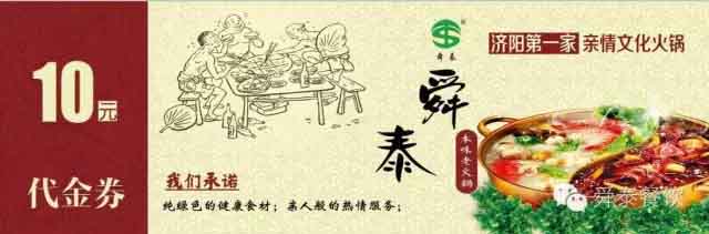 "舜泰廚房"就餐滿(mǎn)一百元菜金送10元代金券