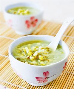 做法:將綠豆用清水浸泡2小時(shí)以上,蓮子洗凈備用,百合洗凈后掰成片備用;將泡好的綠豆加水用大火煮沸,直至煮到綠豆炸開(kāi)后轉小火,加水并加入蓮子繼續熬煮;小火煮約10分鐘后加入冰糖和百合瓣調味,一邊煮一邊攪拌,冰糖完全化開(kāi)后即可關(guān)火,放涼后即可食用。