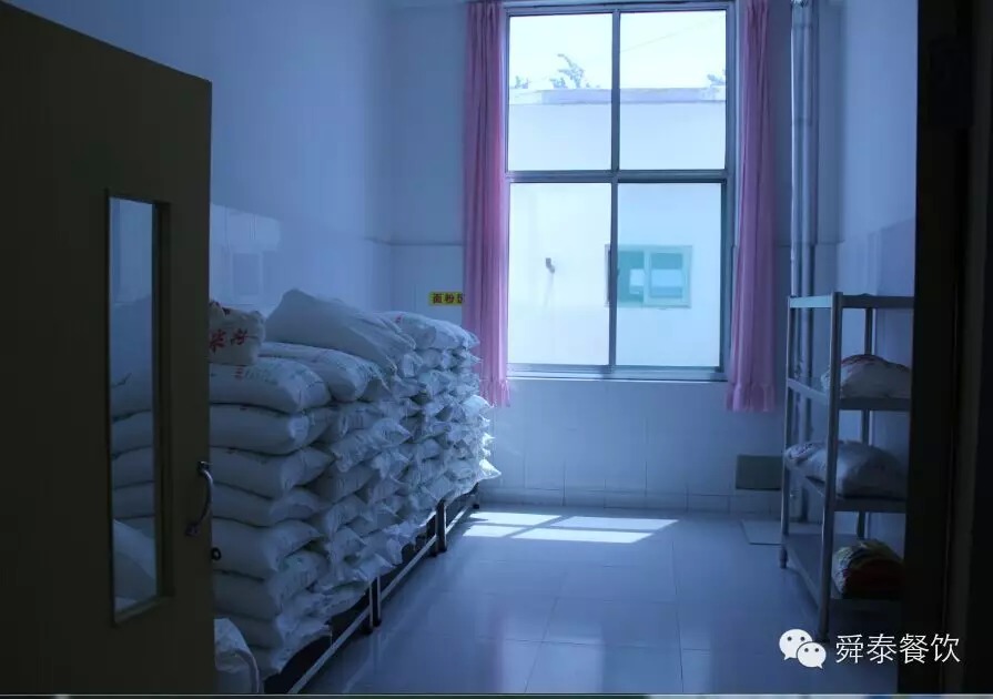 玉皇廟小學(xué)餐廳米面的擺放很標準:食物要離地,離墻
