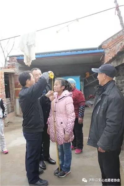為了能給孩子們送上更合身的衣服,會(huì )長(cháng)們帶了米尺親自為樂(lè )樂(lè )測量身高