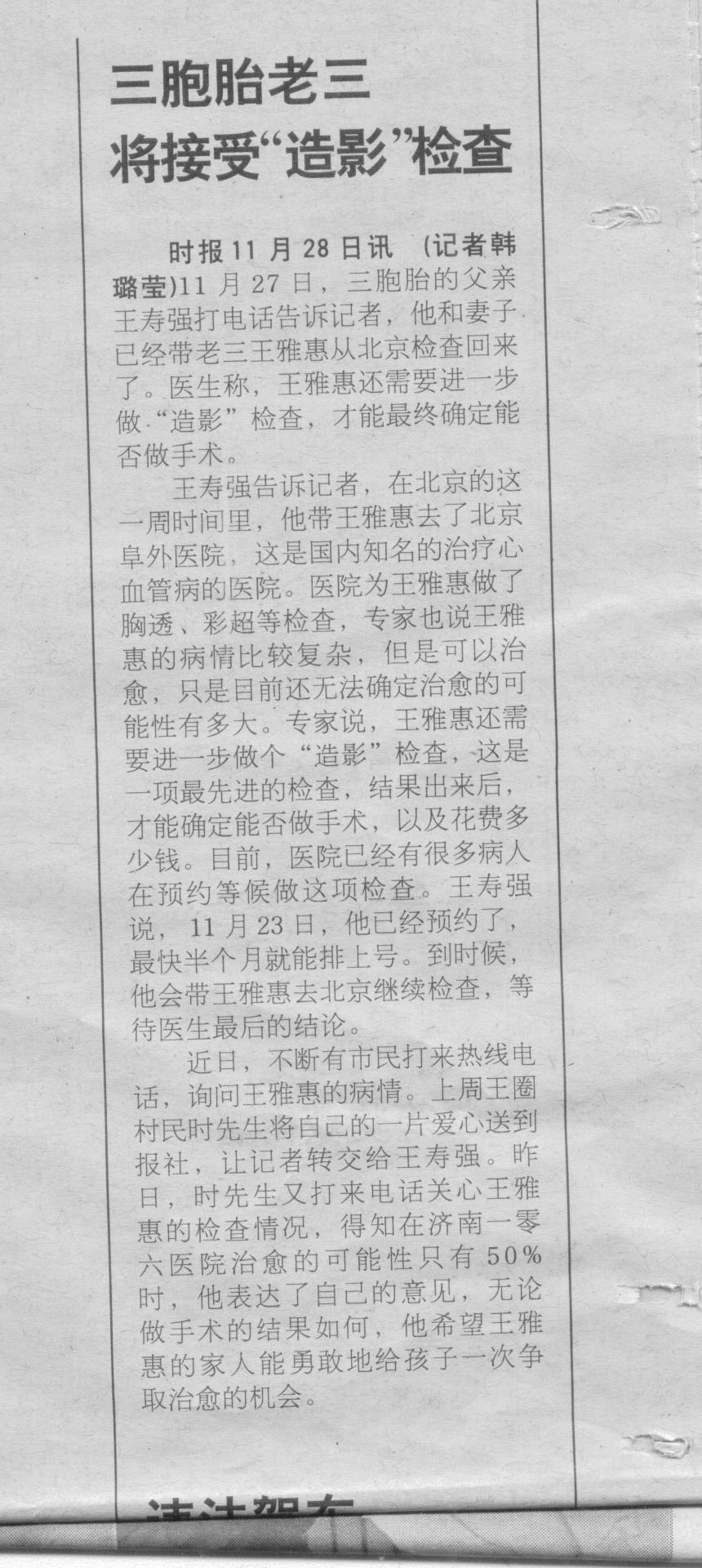 三胞胎最新動(dòng)態(tài):將接受“造影”檢查