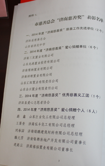 濟陽(yáng)縣愛(ài)心志愿者協(xié)會(huì )榮獲2014年度“濟南慈善獎”優(yōu)秀義工團隊獎
