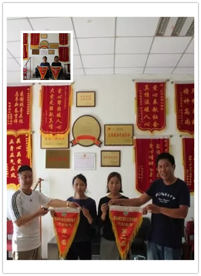 公司領(lǐng)導為餐廳頒發(fā)流動(dòng)紅旗。